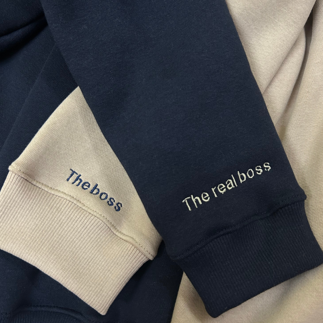 Product : The Boss, The Real Boss Sleeve Embroidery Combo Hoodie or Sweatshirt